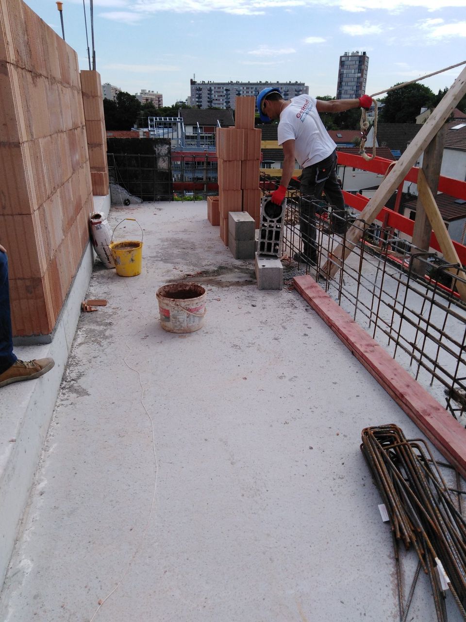 Notre équipe Gros-Œuvre a fait le choix de réaliser les planchers en Entrevous Bois Moulé (Hourdis Bois). Comparé à un plancher hourdi béton classique, cette technique présente de nombreux avantages ! C’est un produit naturel et écologique qui participe à la protection de l’environnement en évitant l’incinération des chutes de bois de scierie. Également, l’entrevous bois moulé est 10 fois moins léger que le béton ! Sa légèreté permet de diminuer la pénibilité du travail et la rapidité de pose des éléments.